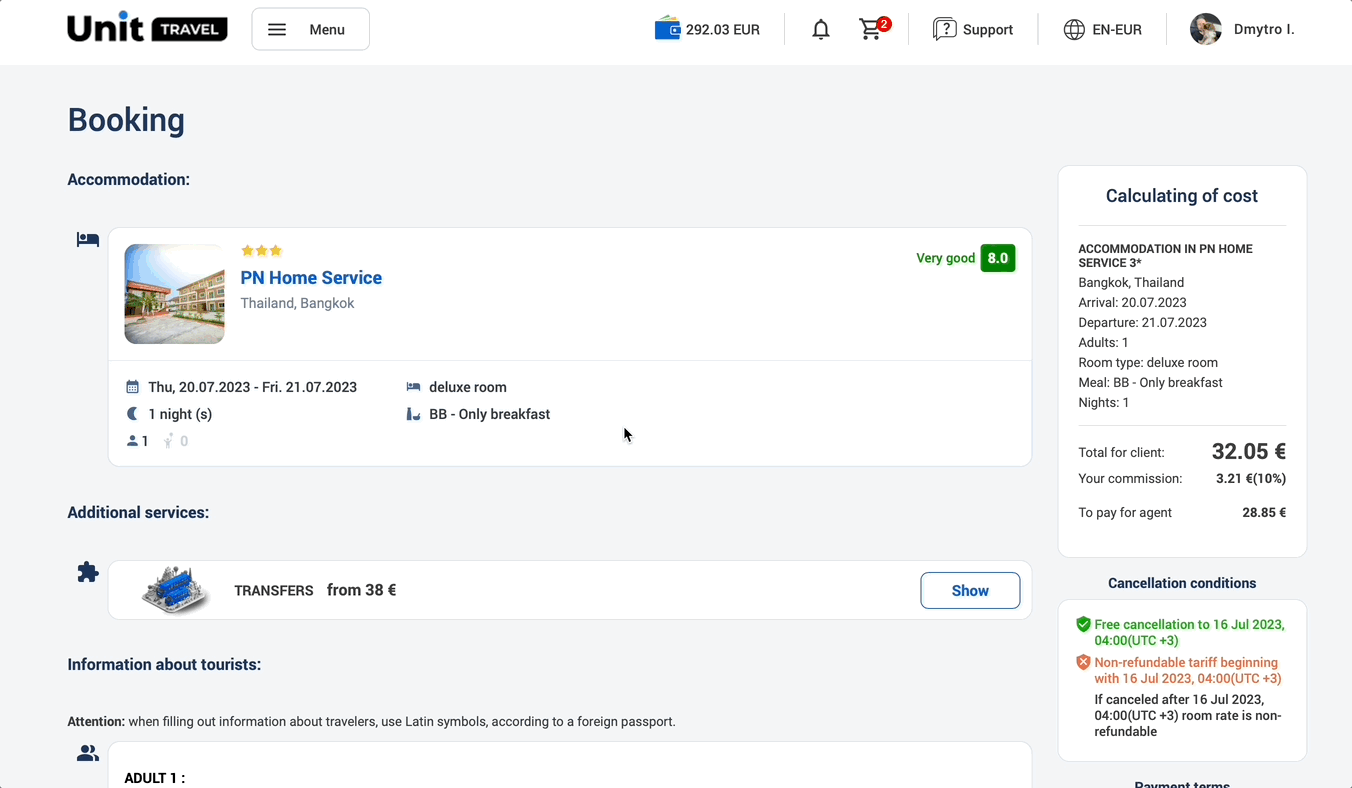 💡You can change the commission yourself, during the booking process, at the time of entering tourist data.